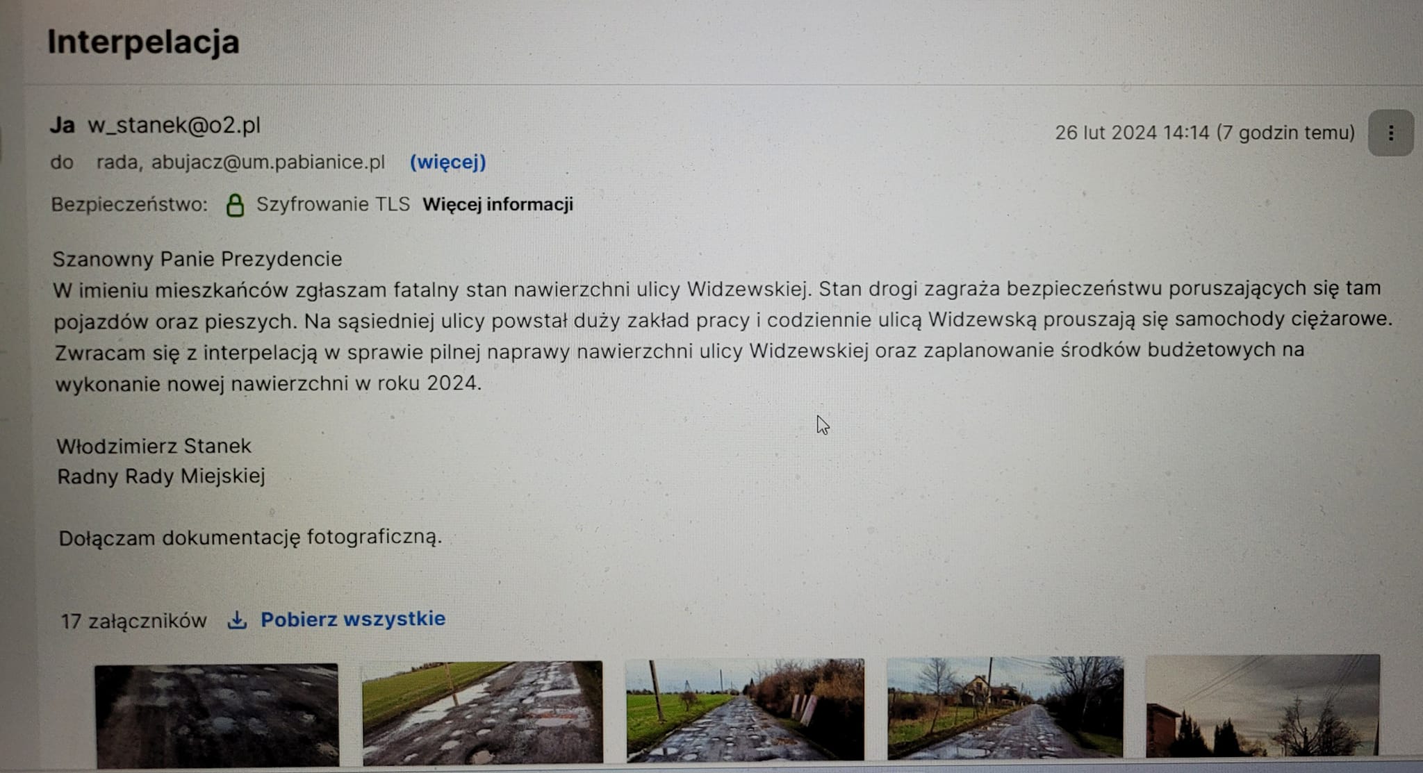 Dziś kolejna interpelacja w sprawie stanu nawierzchni ulicy Widzewskiej. Stan ulicy jest makabryczny ![]()