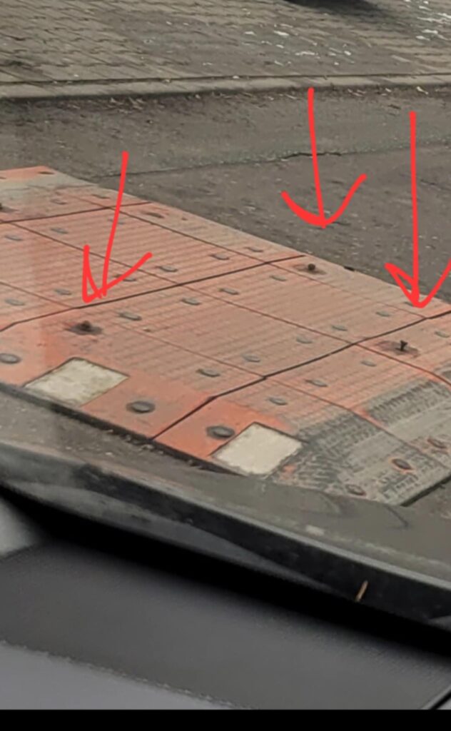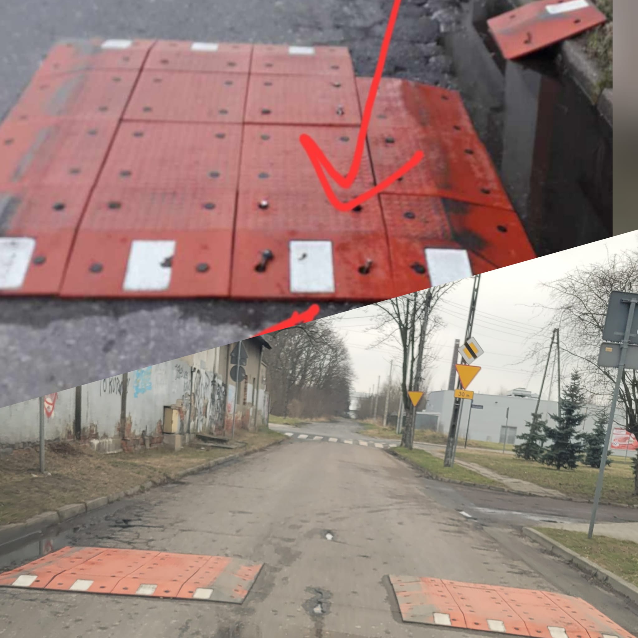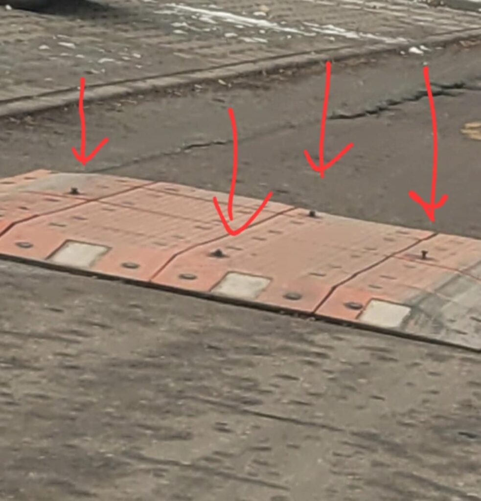 Zgłoszenie od mieszkańców. Kolejny raz wystające śruby z poduszek drogowych stwarzają niebezpieczeństwo dla kierowców. Ulica Ossowskiego przy markecie na literę D.