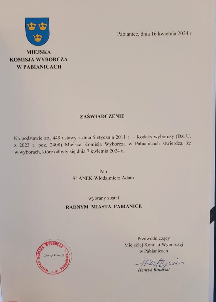 Kandyduję w wyborach samorządowych do Rady Miejskiej w Pabianicach.