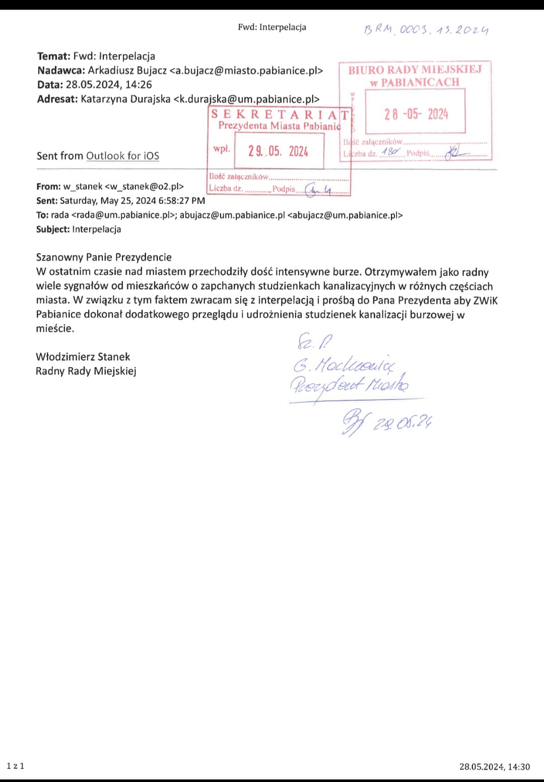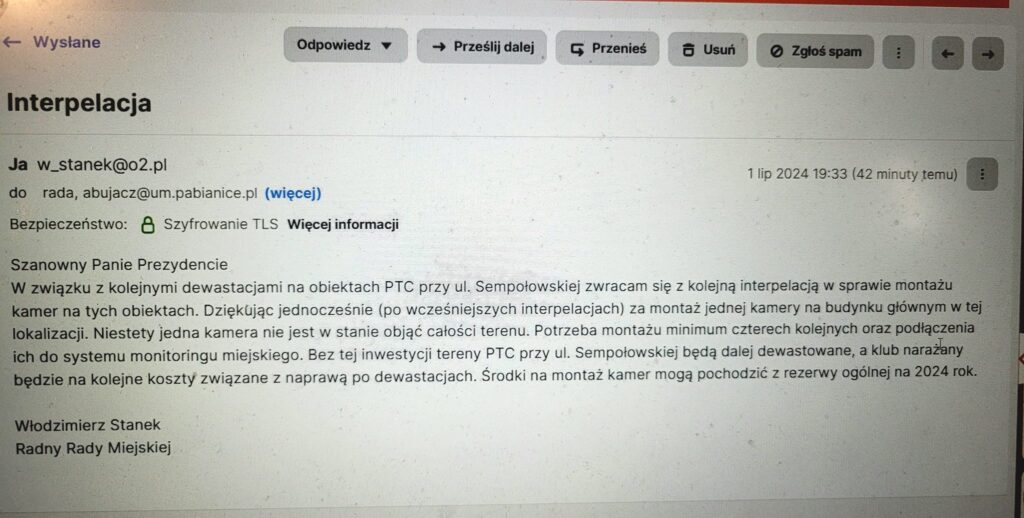 Dziś złożyłem jako Radny interpelację w tej sprawie.