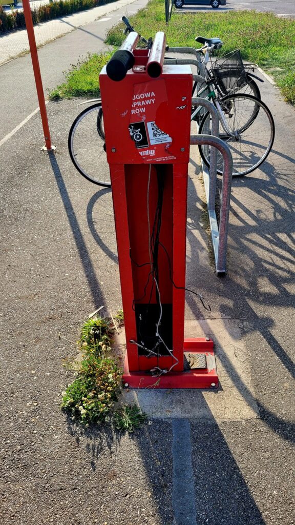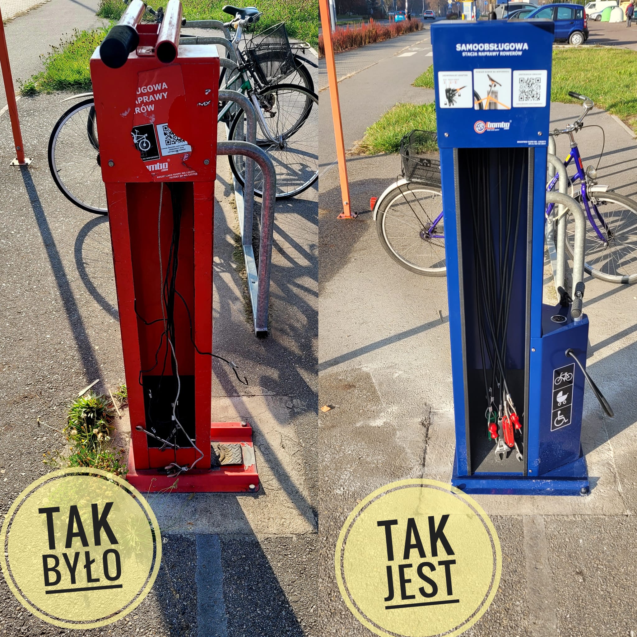 „Naprawisz rower, napompujesz koło” tak brzmiały tytuły w mediach lokalnych w 2017 roku, gdy szumnie otwierano stację naprawy rowerów przy ul. Roweckiego przy Ryneczku na Bugaju ![]()