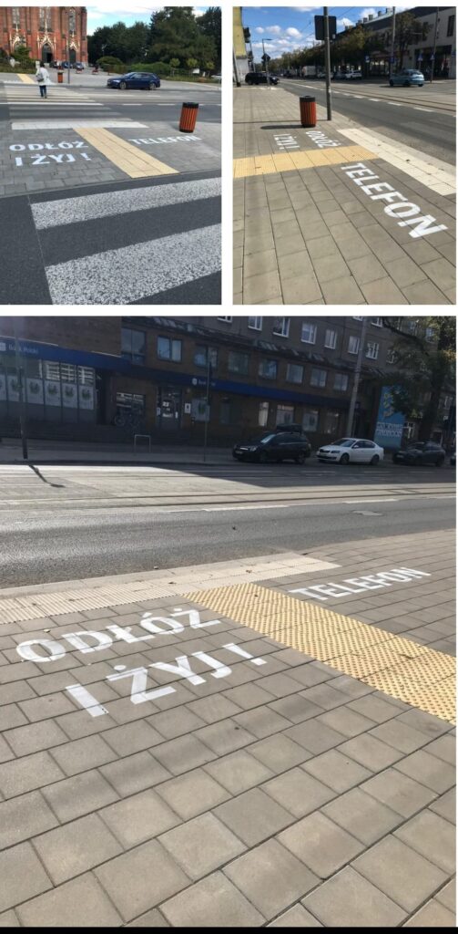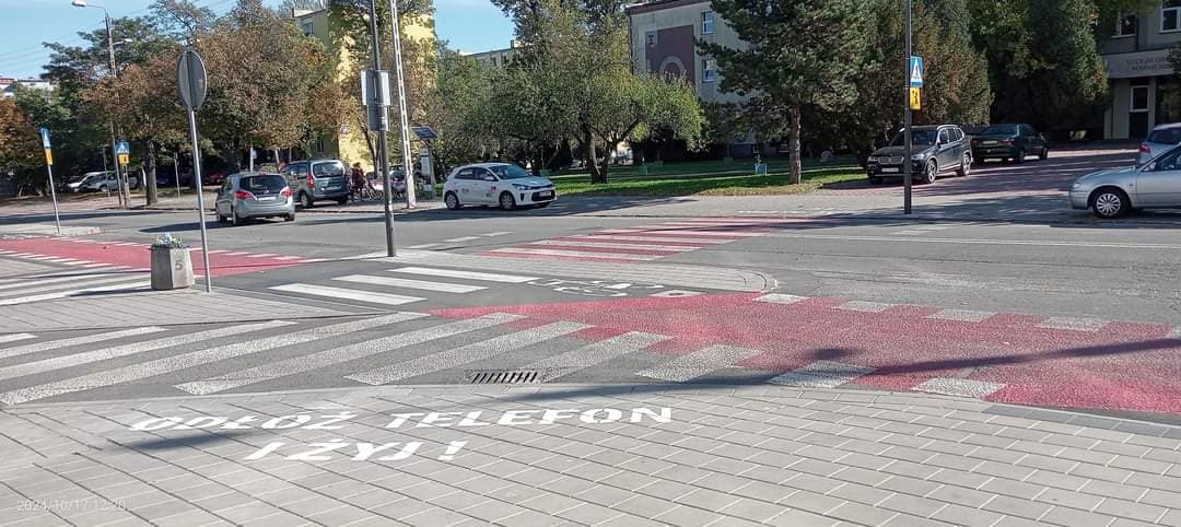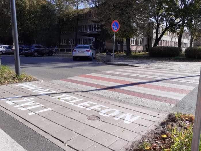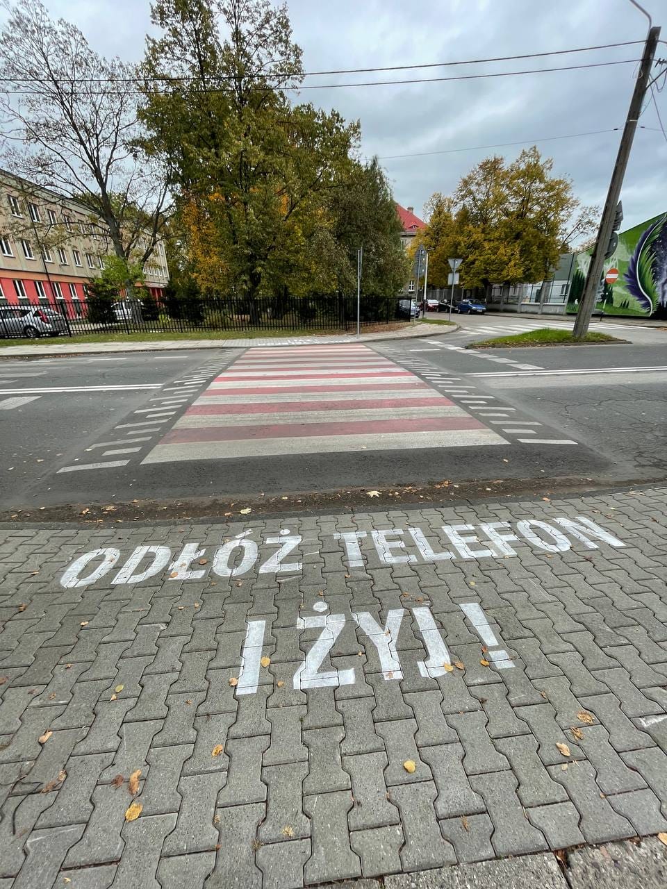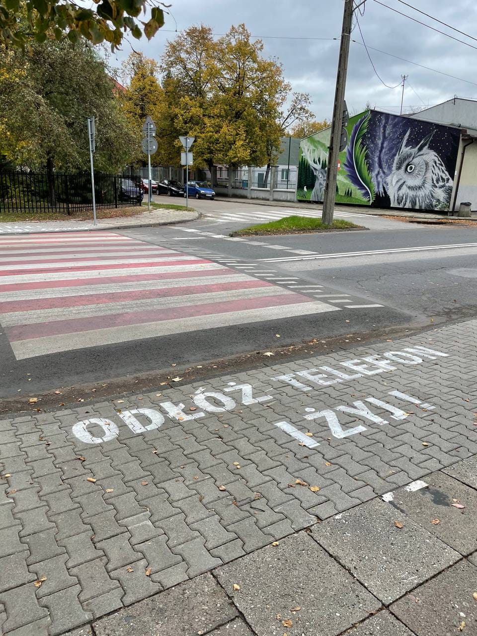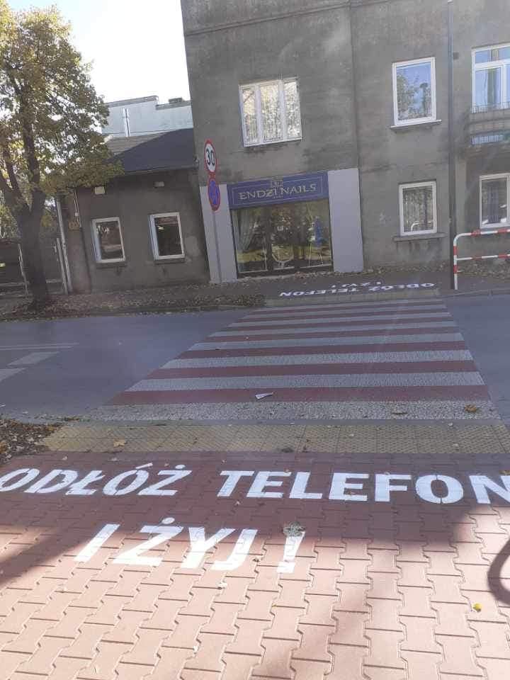 Wczoraj Zarząd Dróg Miejskich wymalował napisy „Odłóż telefon i żyj” przy przejściu w kolejnej lokalizacji przy ul. Traugutta w bezpośredniej bliskości II LO oraz MDK.