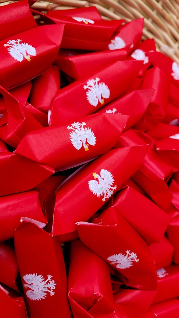 Z okazji jutrzejszego Narodowego Święta Niepodległości częstowaliśmy mieszkańców patriotycznymi cukierkami 👍🏻